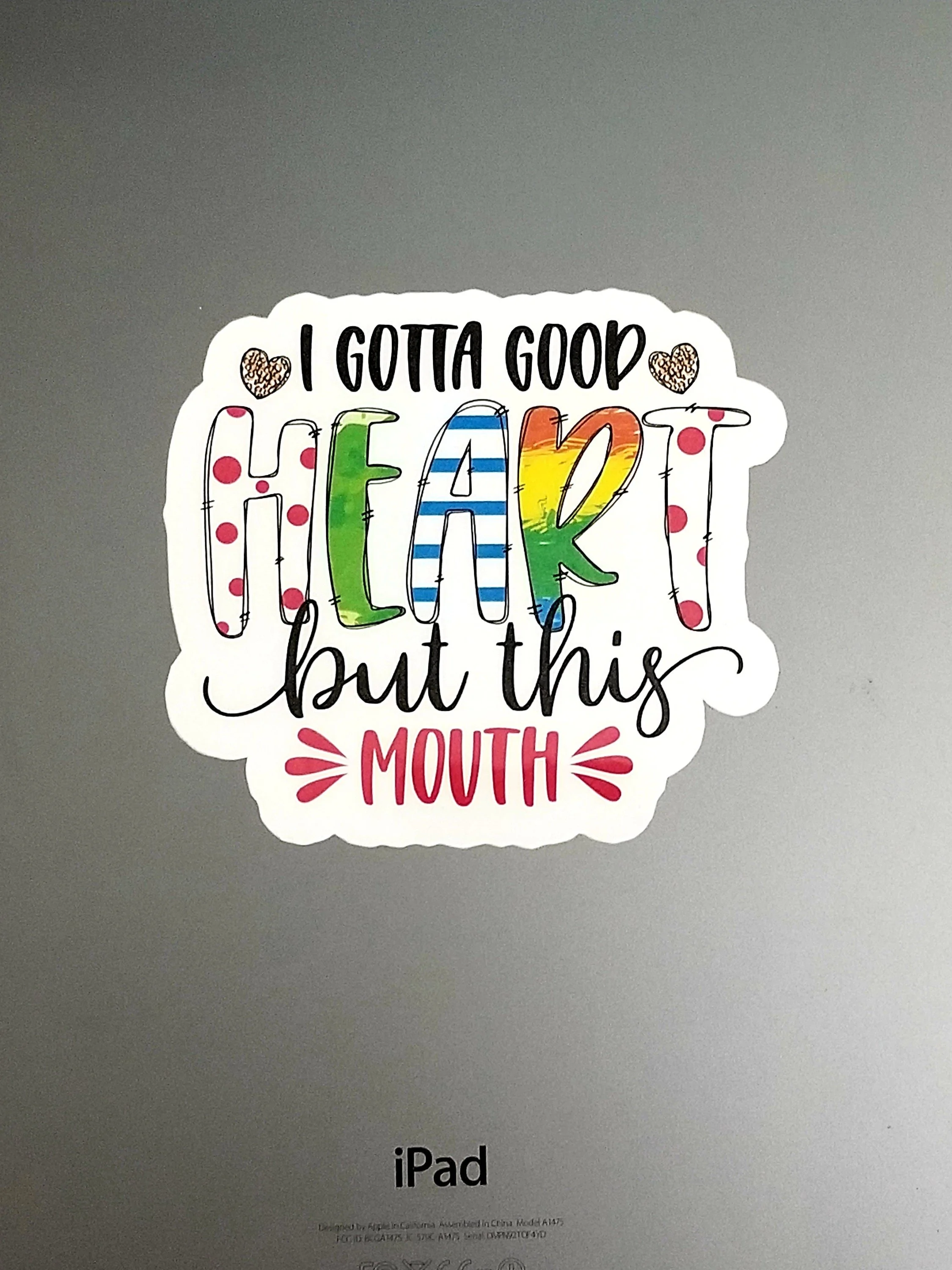 I gotta Good Heart But This Mouth Waterproof Laminated Sticker Vinyl Sticker, Weatherproof Laptop Sticker, Sticker, Matte / Glossy Laminated
